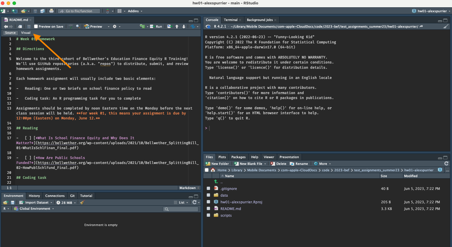 This key command will clear your workspace —- it’s an important step to do often to ensure that you’re only relying on code you’re writing in scripts and not code you’re executing on the fly in the console