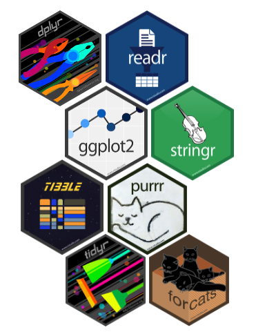 ggplot2, tidyr, dplyr, stringr, forcats, tibble, readr, purrr