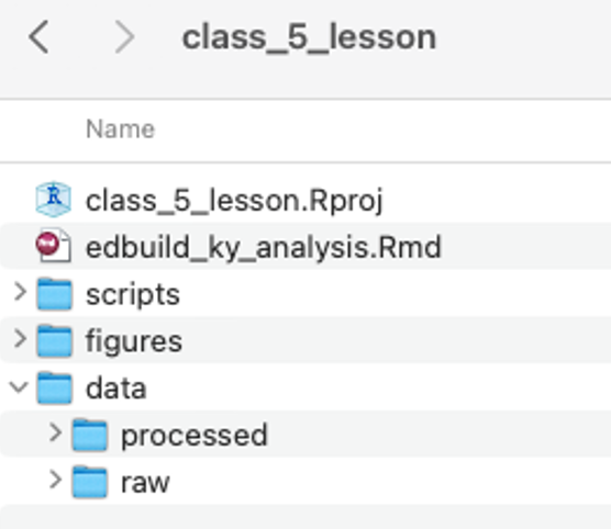 /data folder to keep your raw data files separated from any processed data files you produce during your analysis./processed data folder for exporting clean data or results of your analysis, like summary tables.