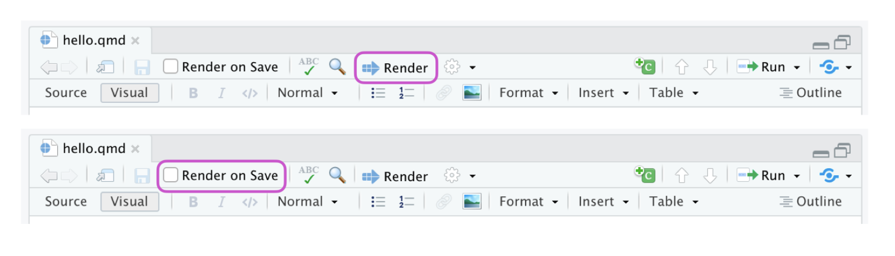 Use the Render button to render the file and preview the output with a single click or keyboard shortcut (⇧⌘K)